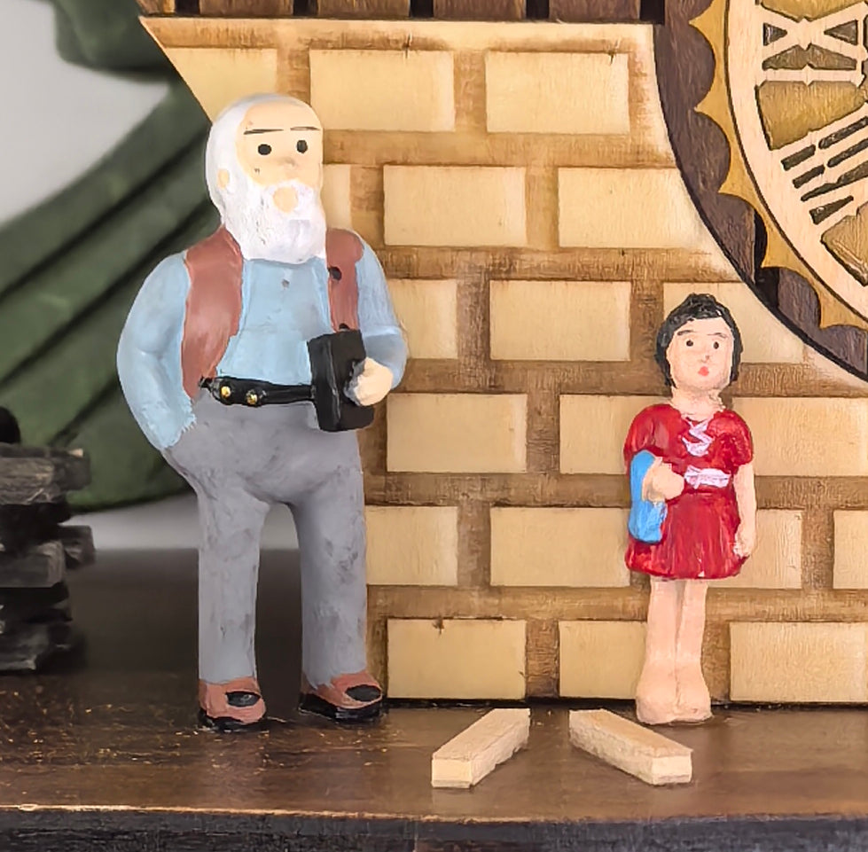 Made from high-quality dark walnut wood, this handcrafted cuckoo clock for wall blends durability with decorative appeal. Ideal for clock lovers or as a thoughtful gift, this German-inspired treasure captures the warmth and tradition of the Black Forest with its endearing dog, grandfather, and grandchildren figures.