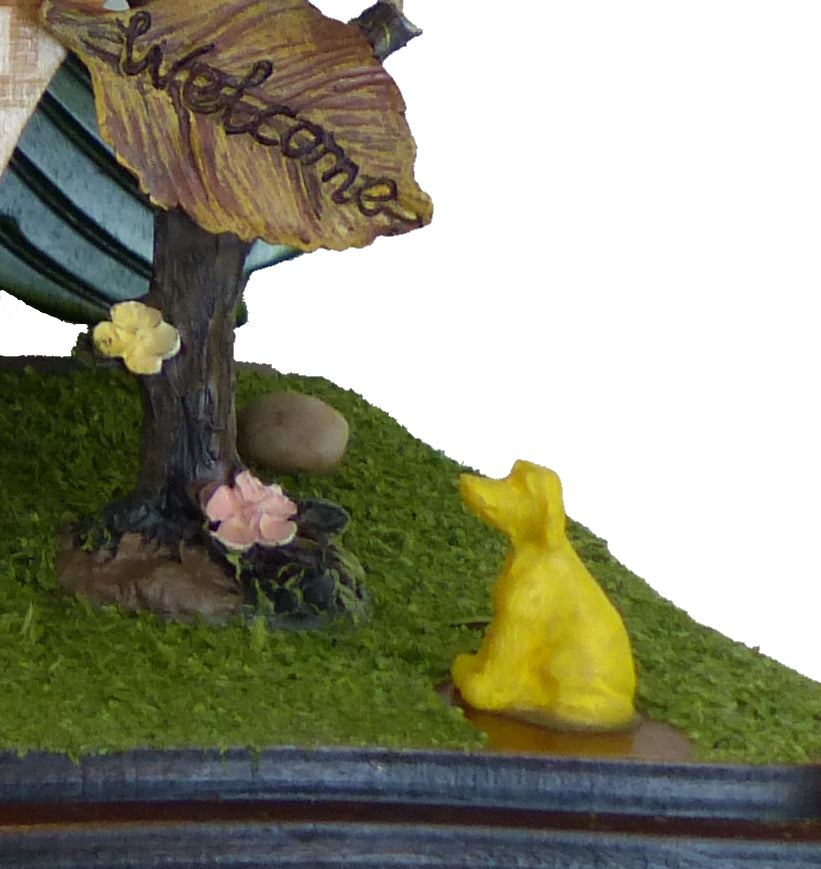 - Fixed figures of a dog in the backyard and a grandfather with his grandkids