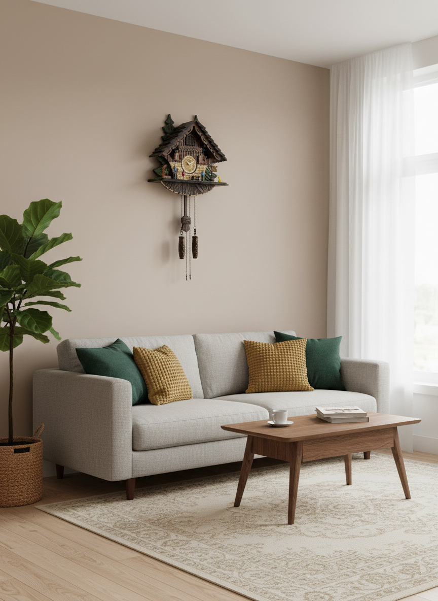 - โ ๐๐จ๐ฎ๐ซ๐ฅ๐ฒ ๐๐ฎ๐๐ค๐จ๐จ ๐๐๐ฅ๐ฅ: Cheerful cuckoo emerges from its house every hour, calling out the time with classic chime sounds for a nostalgic touch.